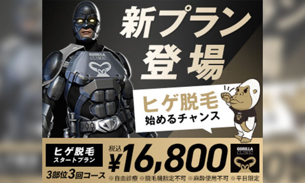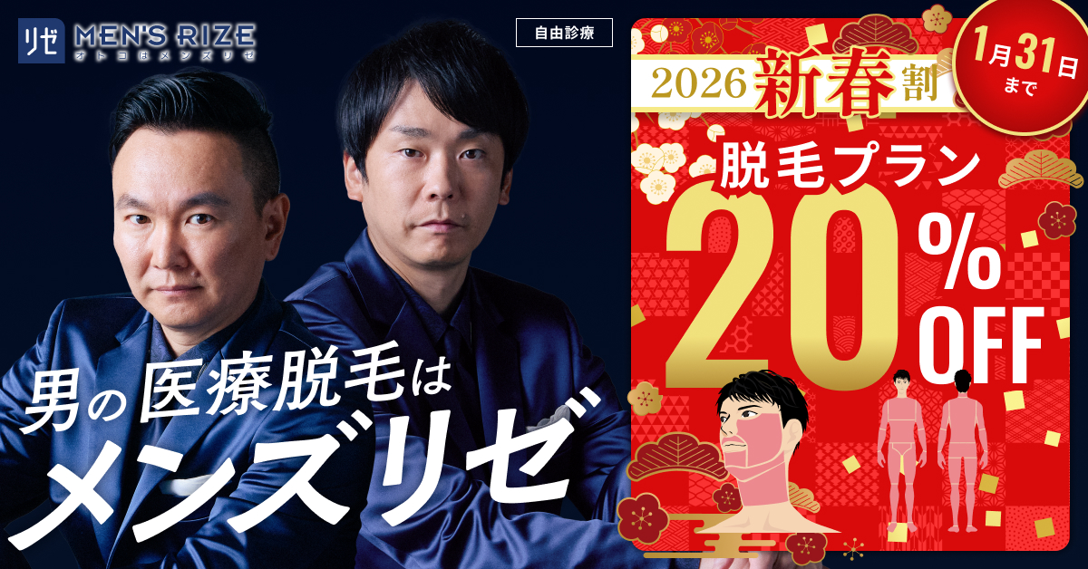 照射パワーの強い機器でメンズでも確かな脱毛実感を得られる医療脱毛(永久脱毛)。1/31までの入会で新春割で脱毛プラン20%オフ